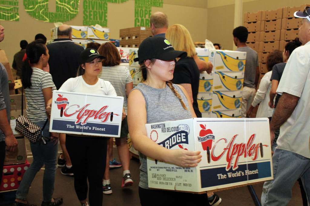 Photo Credit: Houston Chronicle. “Volunteers at the Houston Food Bank sort and pack food and other supplies for relief efforts linked to Hurricane Harvey”